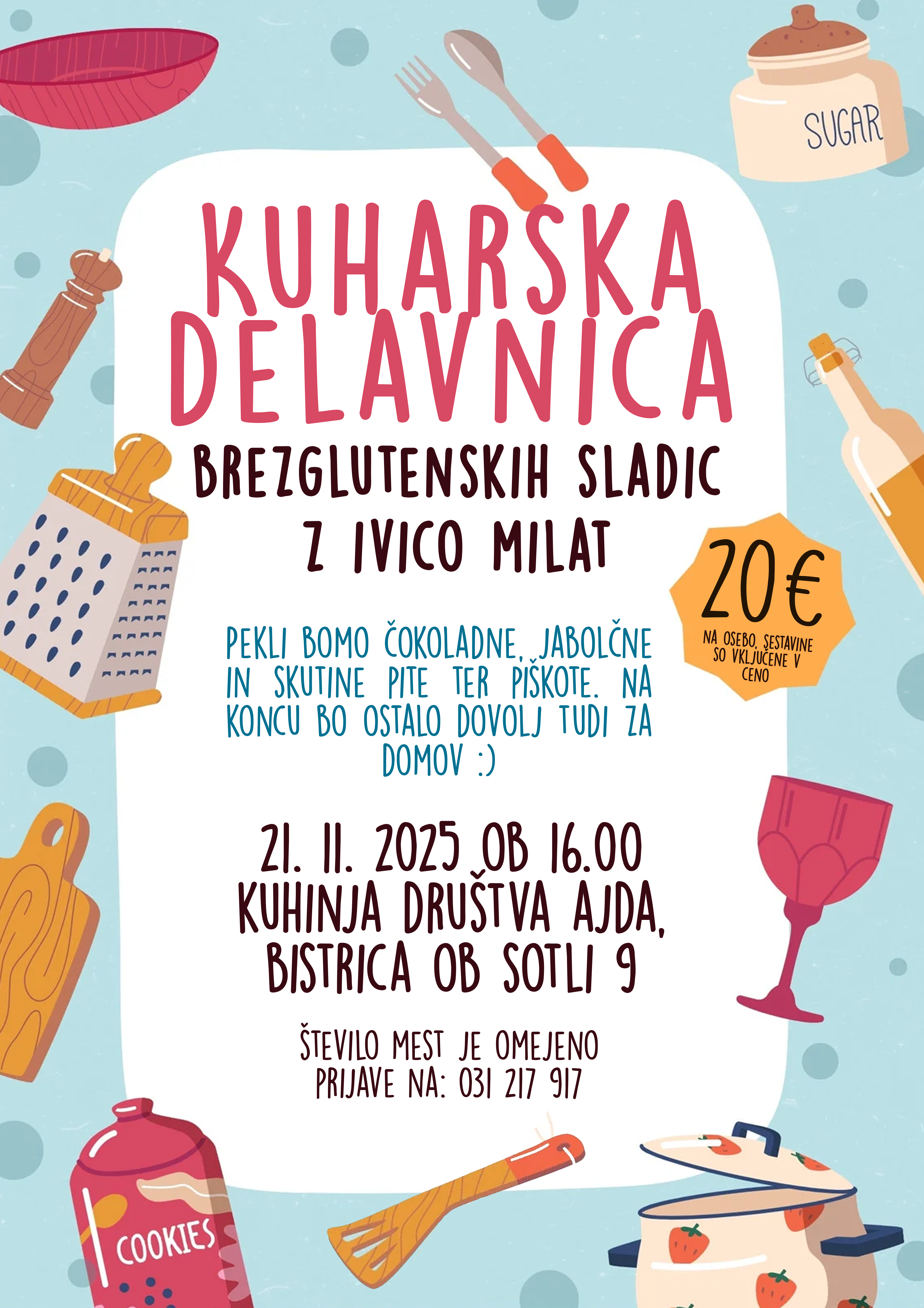 Delavnica bo potekala 21. 11. 2025 ob 16.00 v kuhinji društva kmetic Ajda, na naslovu Bistrica ob Sotli 9 (vhod zadaj pri prizidku občinske stavbe).